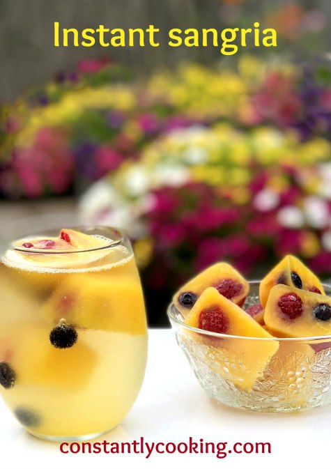 Sangria is one of my go-to summer sippers and while I enjoy the fancy kinds that are so delicious on a restaurant patio, I don’t always have all the special ingredients bartenders often use for sangria, like Triple Sec, Cointreau or Brandy. My solution is a really simple one: I fill ice cube trays with juice along with a couple of berries and freeze. Pop a few in a glass, add wine and whatever else you like, and presto! Instant sangria that tastes better and better with each sip, as the cubes melt. As a bonus, you won’t be diluting your drink with water as you would with conventional ice.