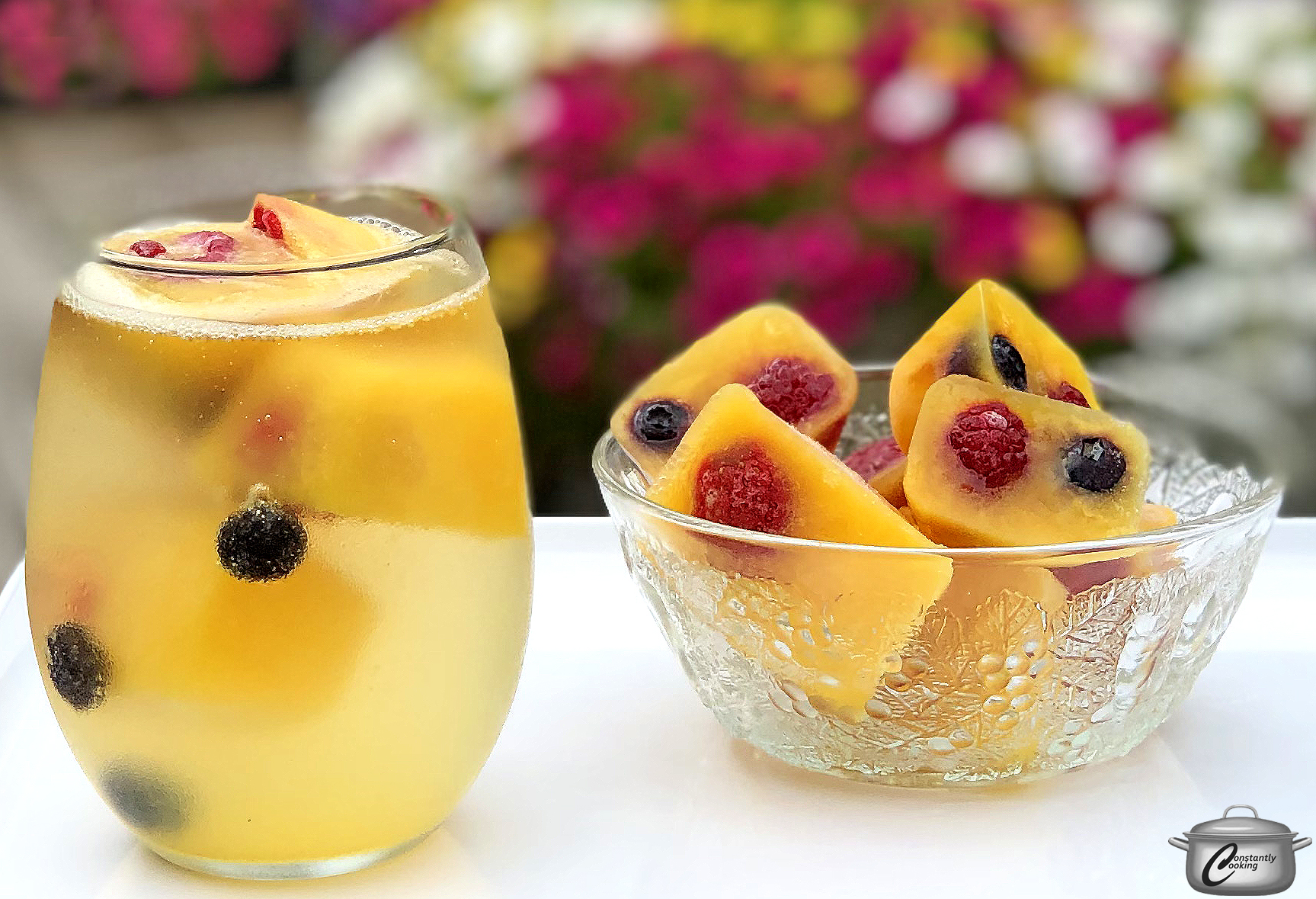 Sangria is one of my go-to summer sippers and while I enjoy the fancy kinds that are so delicious on a restaurant patio, I don’t always have all the special ingredients bartenders often use for sangria, like Triple Sec, Cointreau or Brandy. My solution is a really simple one: I fill ice cube trays with juice along with a couple of berries and freeze. Pop a few in a glass, add wine and whatever else you like, and presto! Instant sangria that tastes better and better with each sip, as the cubes melt. As a bonus, you won’t be diluting your drink with water as you would with conventional ice.