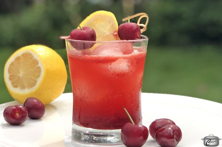 Although this drink is delicious ‘as is’, like most lemonades, it can be transformed into a delightful cocktail with the addition of a splash of rum, whiskey, bourbon or vodka. If you want to take advantage of fresh sweet cherries while they are in season, you can pit and freeze them for later use in this recipe and others like these scrumptious cherry cheesecake popsicles. Note that sour cherries would also work in this recipe, although you might have to adjust the amount of sweetener if you find the syrup a little too tart.