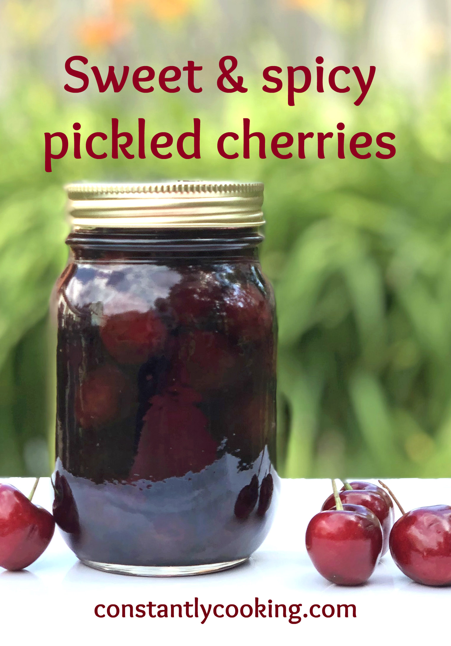 It’s no accident that there is a whole subsection of my website devoted to pickles, preserves and condiments. My siblings and I were always expected to help with the vast amounts of canning that went on in our home and I have kept up the tradition, albeit in much smaller quantities. I love making single jars of a tasty preserved treat because they’re so fast and easy, yet can be enjoyed for weeks to come. These pickled cherries are a great case in point – you can serve them over yogurt or ice cream for a simple dessert, toss them in a cocktail, slice them and add to a salad, or use them to perk up a cheese or charcuterie board. If you’re a fan of pickled fruit you might also enjoy my pickled melon, pickled blueberries or pickled apple slices.