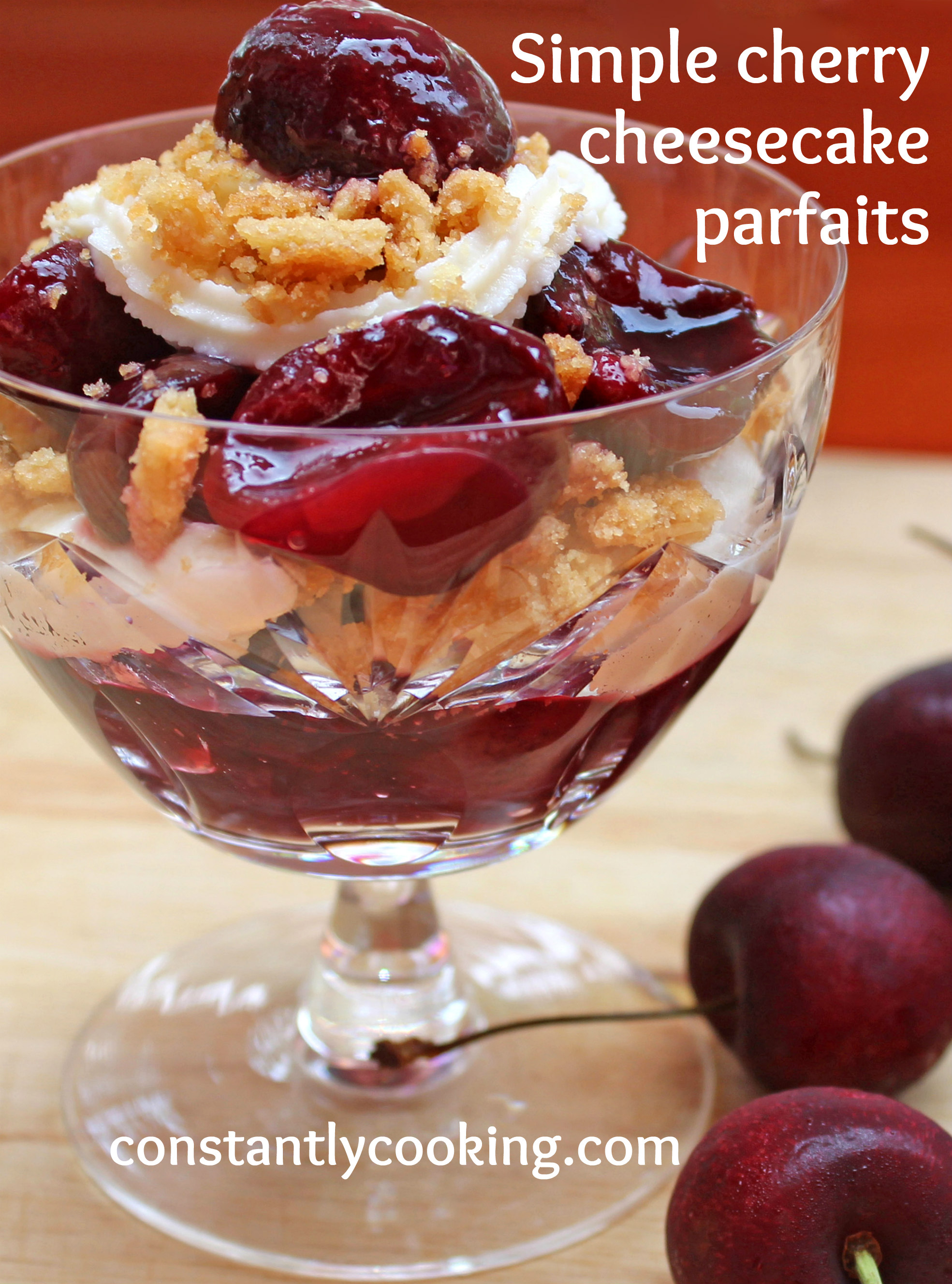 - To assemble parfaits, place about 2 tablespoons (30 mL) of the cherry mixture in the bottom of four serving dishes (small mason jars, cocktail glasses or even wine glasses work well).