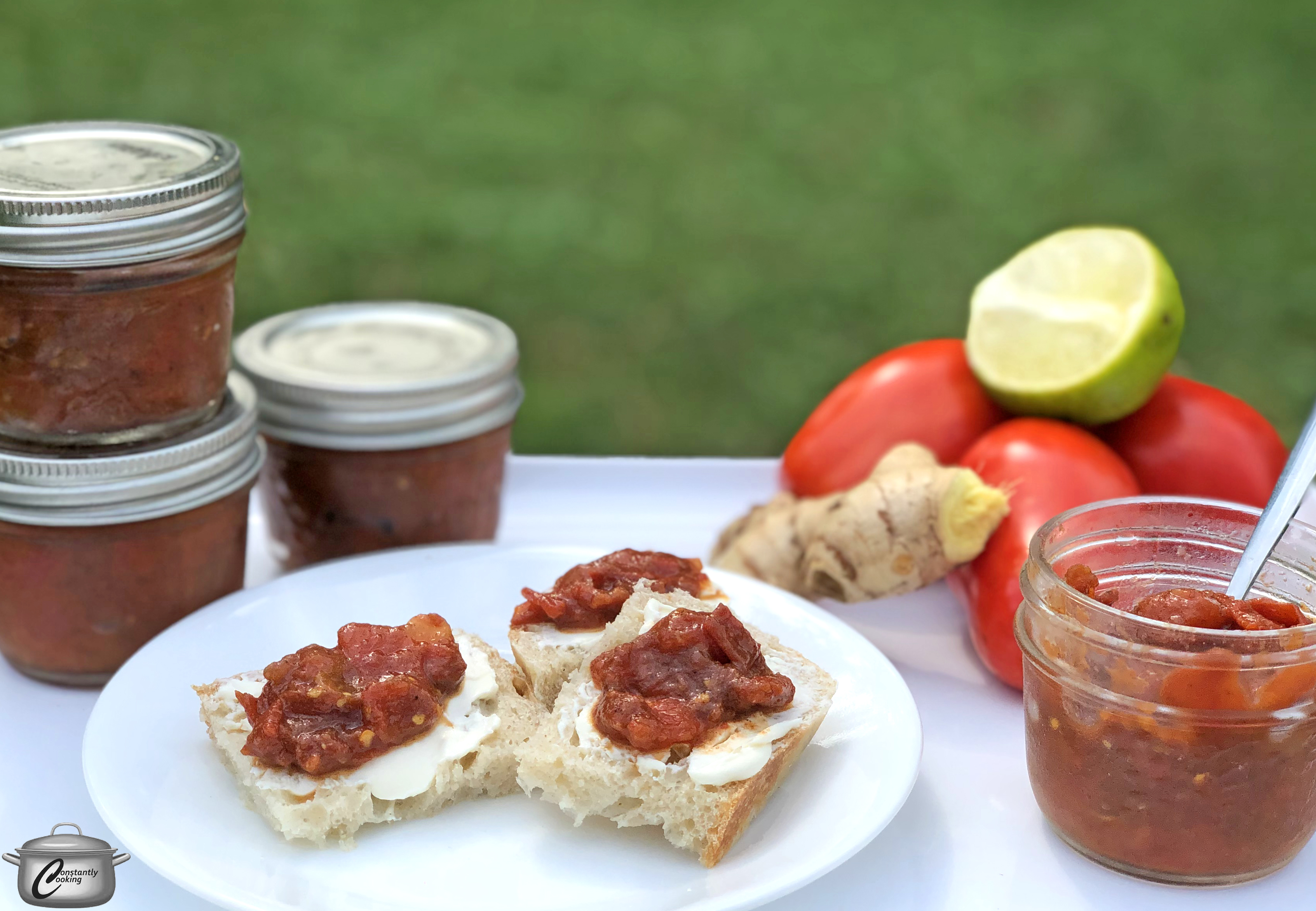 A delightful alternative to ketchup, tomato jam can be used in so many ways and it’s a great way to preserve a bumper crop if you’re a gardener. I love it on slices of rustic bread spread with chèvre or cream cheese; it’s also great as part of a cheese or charcuterie board. To make a true tomato jam, you need sufficient sweetness and acidity (beyond the tomatoes’ natural acidity), otherwise it will be more like spiced tomato sauce. I recommend using fresh plum-style tomatoes (San Marzano or Roma are best) but you could also use a can of whole plum tomatoes instead.