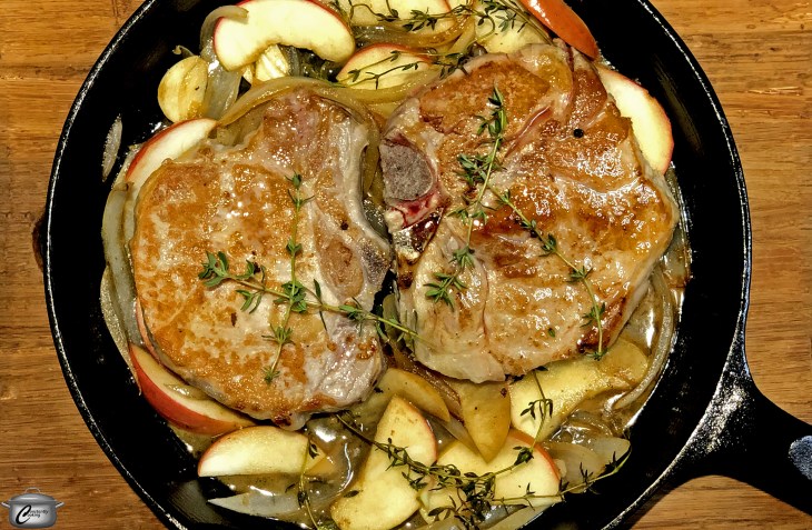 • Serve pork chops with pan juices, apples and onions spooned over top. Garnish with additional fresh sprigs of thyme if desired.