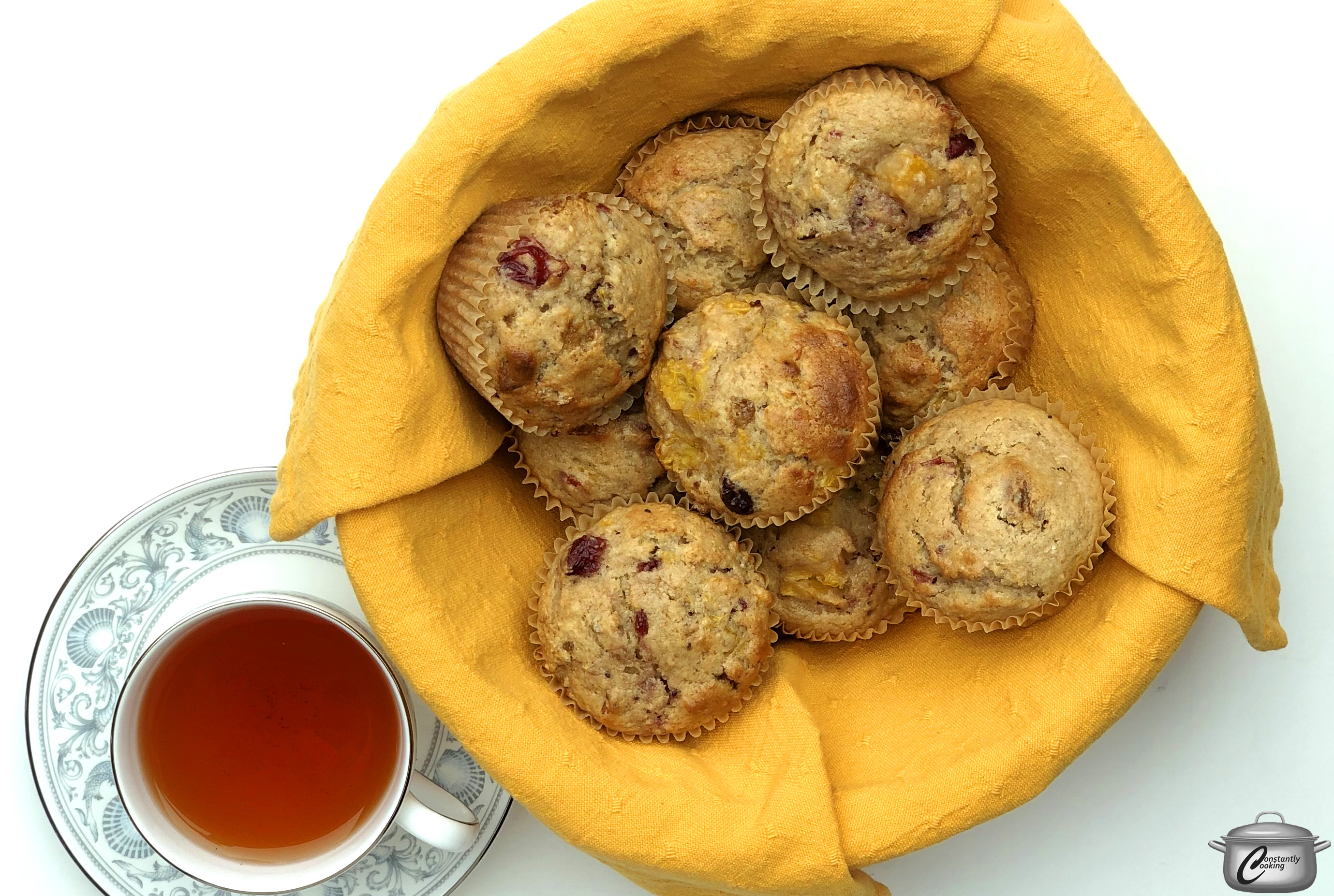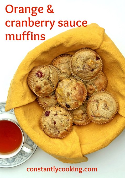 These days, the first place I look when I’m thinking about baking is my pantry shelves. I bought quite a range of canned foods a couple of months ago and now it’s time to get busy using it all up. If you don’t have canned cranberry sauce on hand, homemade is great too. I just don’t recommend using chopped uncooked cranberries as they will be too tart in this recipe. These muffins freeze beautifully.
