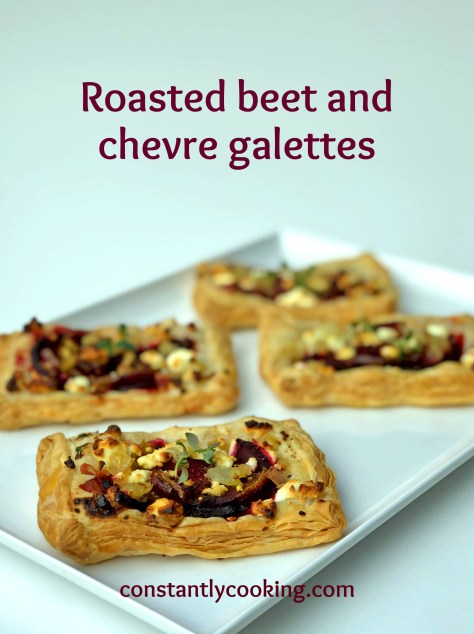 I love making freeform tarts both large and small, sweet and savoury. Using purchased puff pastry makes these tarts a snap to assemble and gives them a delicate, crispy texture that’s really appealing. You could add in other vegetables such as roasted carrots or sliced zucchini; just be sure not to overload the tarts so the pastry bakes evenly. These are delicious as an appetizer or make a great main course when paired with a green salad. If you’re a big fan of beets (as I am) you might also like this scrumptious warm beet and pear salad or this delightful beet and walnut pesto.