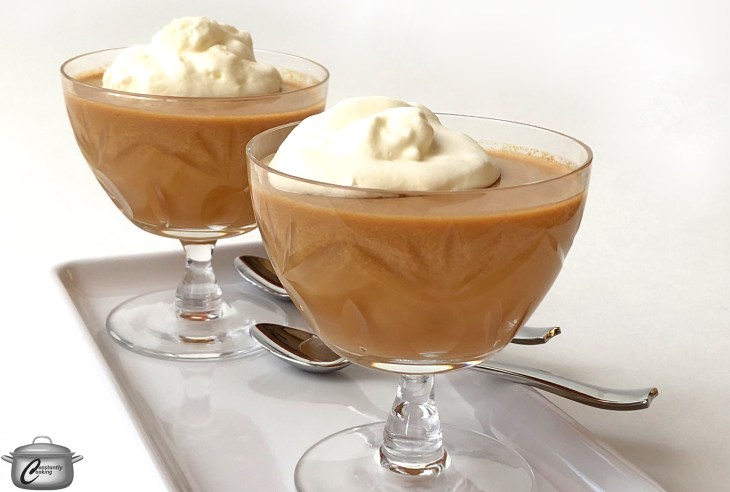 - To make it easier to pour into serving vessels, transfer the caramel, milk and espresso mixture to a pitcher with a good spout (or a 4 cup / 1L glass measuring cup) then pour equal amounts into four serving dishes (ramekins, little bowls, martini glasses or wine glasses are all good options).