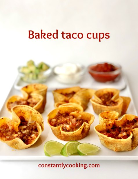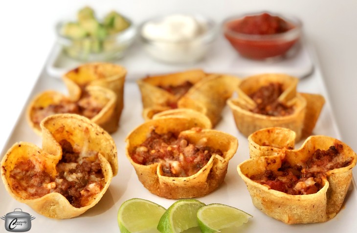 - Transfer baked taco cups to a platter and serve warm, with toppings on the side.