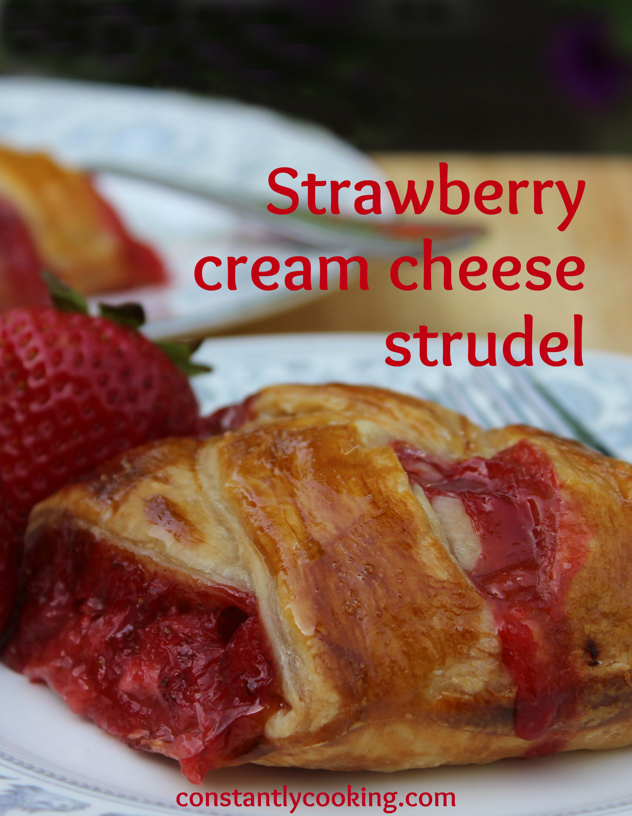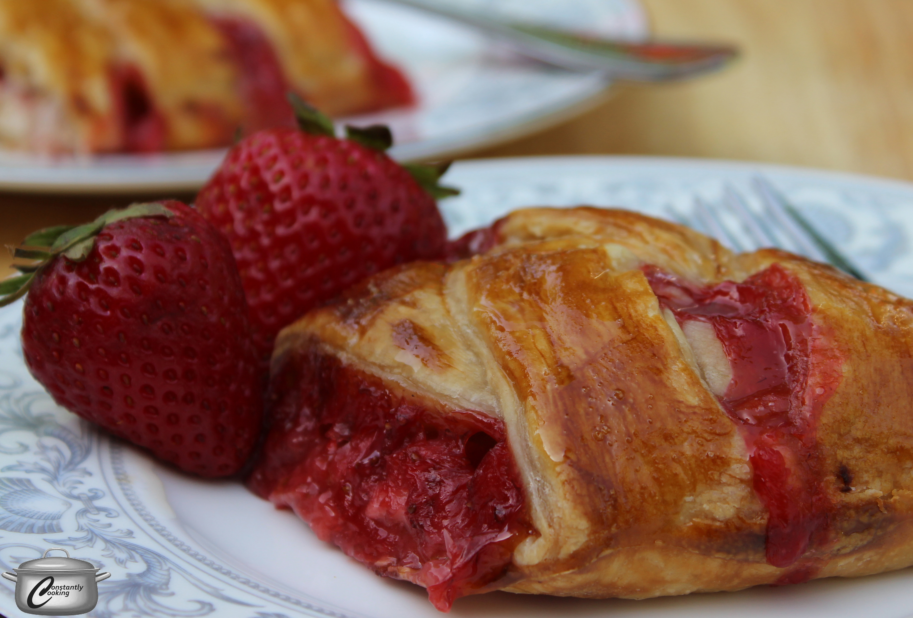 - To assemble, spoon cream cheese filling down the centre of the pastry, in a line no more than 2 inches wide. Spoon strawberry filling over top of the cream cheese (it will spread a little wider but try to keep it on the uncut portion down the middle of the pastry (see second picture below).