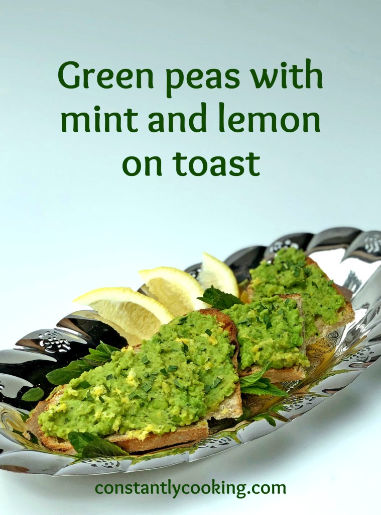 • Toast sourdough bread slices and butter lightly, if desired. Top toast generously with pea spread then sprinkle with remaining lemon zest, a bit more black pepper and additional mint or chives.