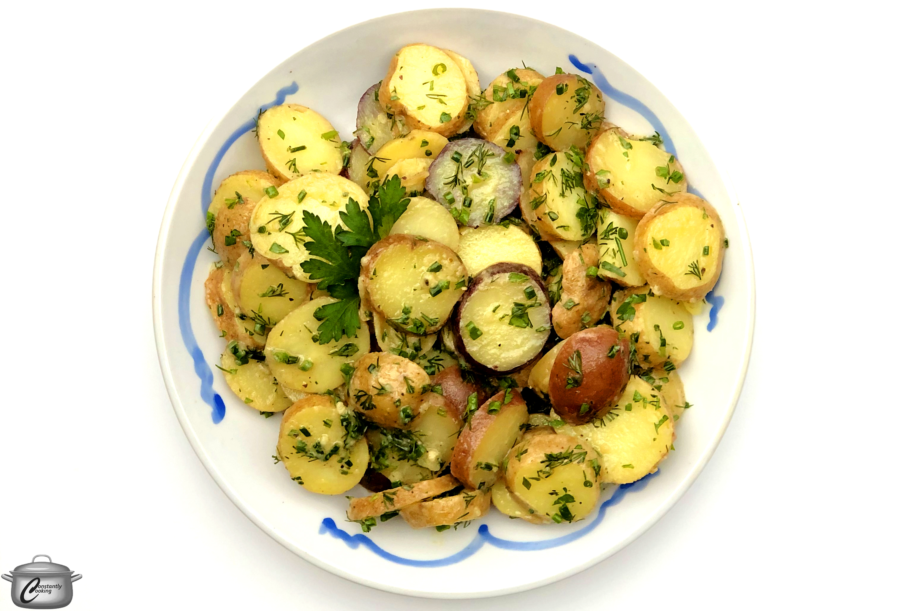 - When ready to serve, sprinkle the chopped fresh herbs over the dressed potatoes and toss to combine.