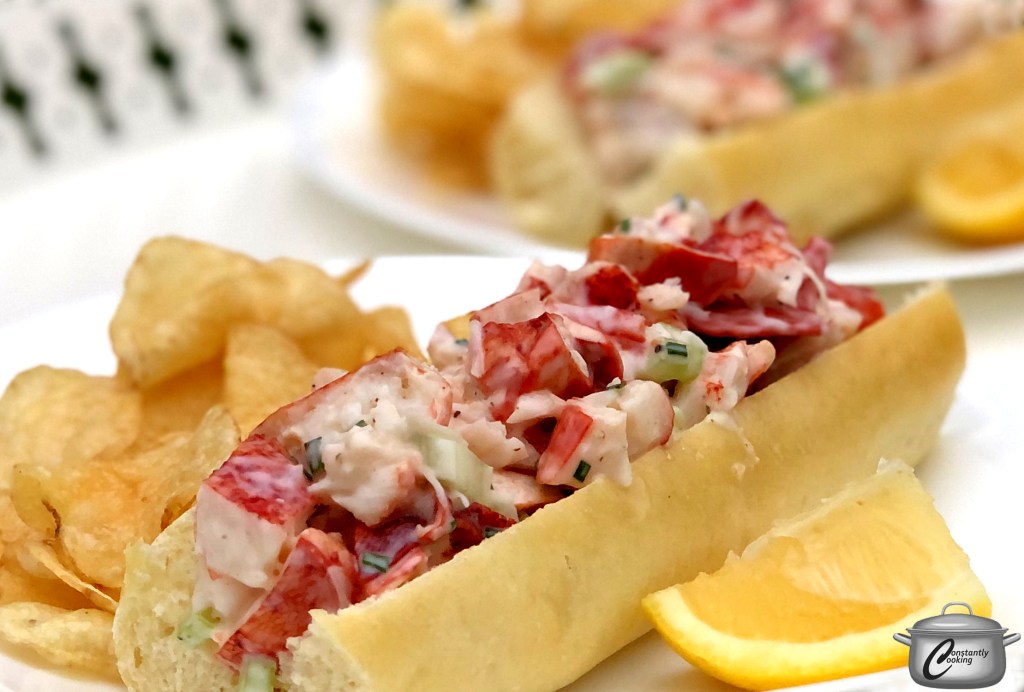 Thanks to my Maritime heritage, I just adore eating all kinds of seafood. Freshly-cooked lobster is a ‘special occasion’ meal in our house, but recently I’ve taken to buying packages of frozen lobster meat at my local fishmonger. These offer great value and are super versatile, plus you don’t have to do all the work of extracting the meat from the shells. Because I like to serve my lobster rolls with potato chips and coleslaw, I find I can make 6 of them out of a pound of lobster meat; if you like your sandwiches really loaded, you may prefer to just make 4.