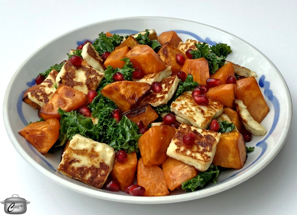 This scrumptious dish is as tasty as it is beautiful and would make a great vegetarian main or side dish, especially as part of a holiday feast. An air fryer makes fast work of roasting the sweet potatoes, but they’re just as good when prepared in an oven. If you’re looking for a substitution for the pomegranate seeds, I suggest chopped, toasted walnut or roasted sesame seeds, perhaps with a little diced red pepper for a pop of colour. Raw or wilted baby spinach could be used in place of the kale, if you prefer.