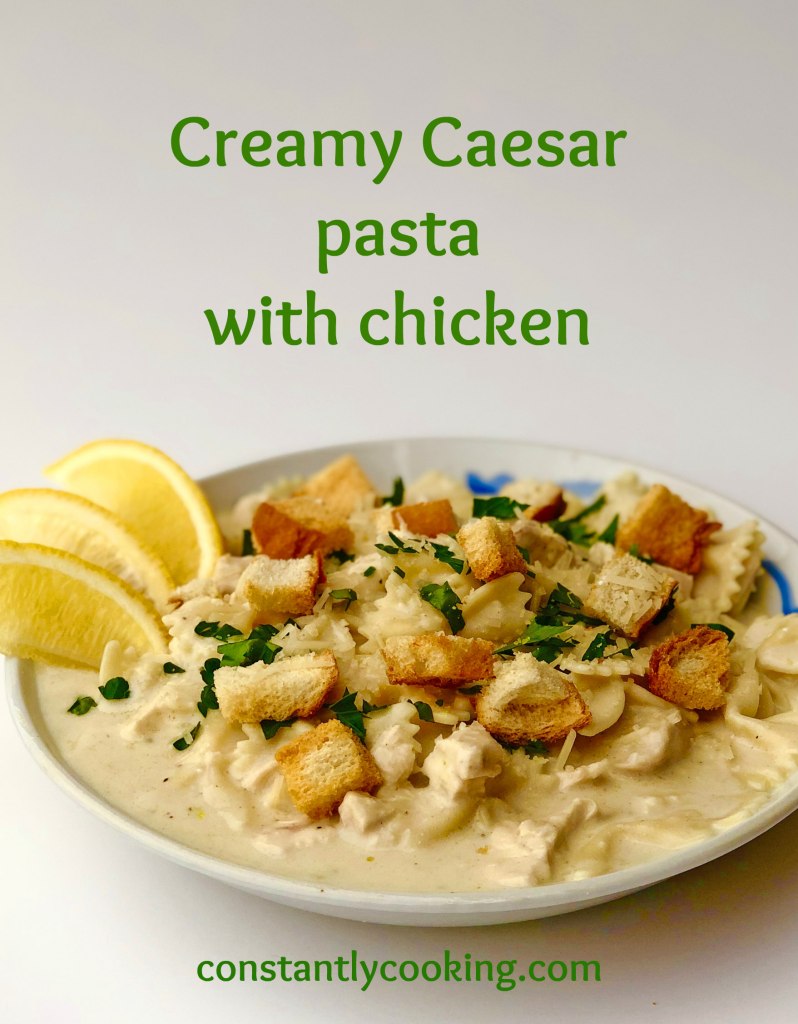 My faithful taste tester described this dish as ‘mac and cheese fit for royalty’ which made me chuckle. With its rich, creamy sauce, crunchy croutons and tender morsels of seasoned chicken, it’s delicious, hearty and comforting. To streamline the process, rather than the laborious process of chopping, marinating and cooking chicken, I decided to use some leftover rotisserie chicken to which I added a little marinade and wow was that ever a good choice. This dish works equally well with gluten-free pasta and gluten-free flour as well as non-dairy milk and cheese if those are your preferences.