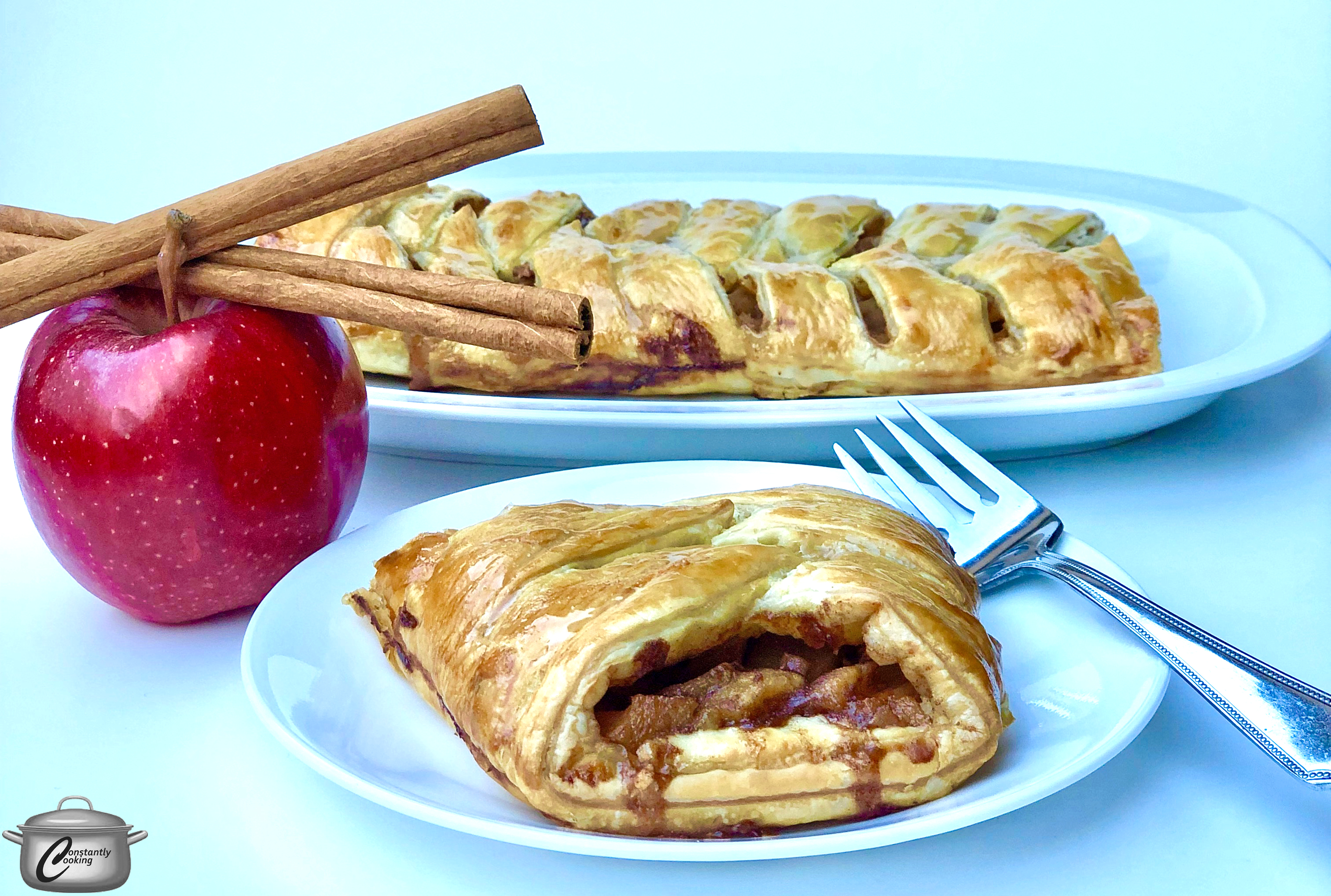 I love working with purchased puff pastry as it’s so versatile and easy to use. For this tasty treat, you can use purchased (canned) apple pie filling if you like; if you prefer to make your own, I’ve added that recipe to the bottom of this post. Using a cooked apple mixture instead of raw apples helps speed up the baking process here and it also means the strudel won’t collapse as it cooks. Note that you can prepare the strudel up to 12 hours ahead; cover and refrigerate until ready to bake. If you are as big a fan of homemade strudel as I am, you might also enjoy this strawberry version.