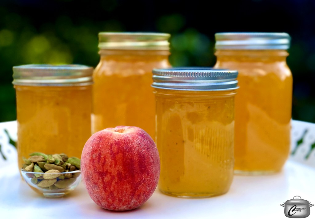 - Put the peaches in a very large pot and add the lemon juice, cardamom and sugar. Stir and cover and let sit for at least one hour or up to six hours to allow the fruit to macerate and release its juice.
