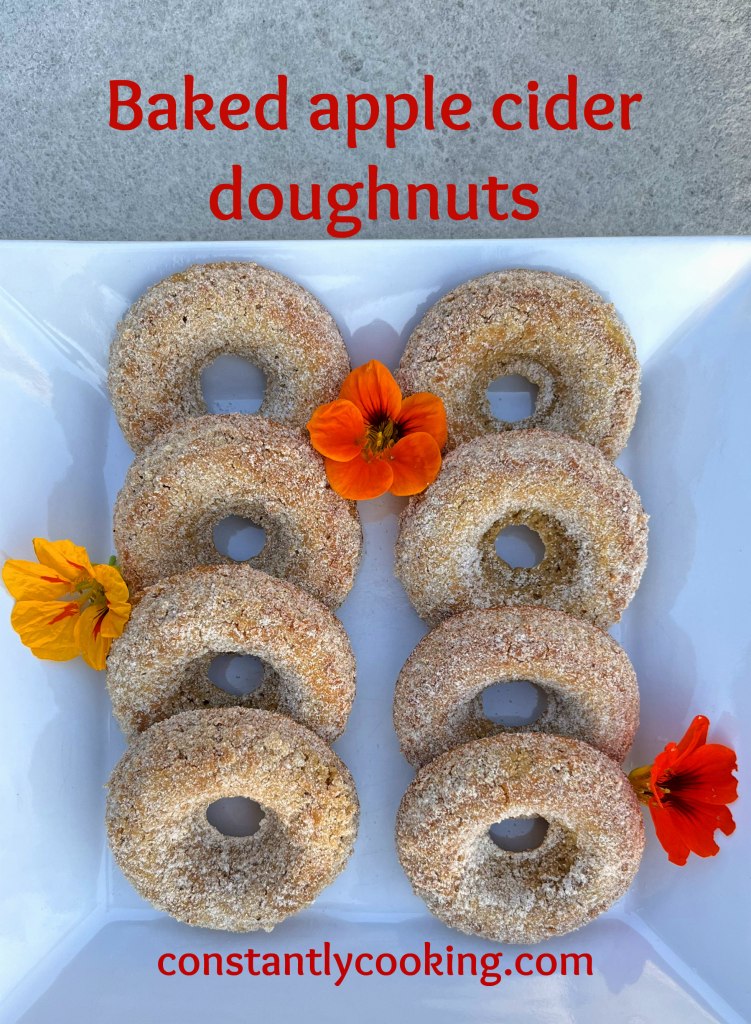 If you’ve ever been apple picking at an orchard or visited a harvest festival, you may have tasted the warm, sugary apple cider doughnuts that seem to be offered at so many autumn events. While I am a huge fan of deep-fried doughnuts, they’re not something I prefer to make at home, so I decided to come up with an easier, oven-baked version. The concentrated cider really makes the flavour of these doughnuts special and it only takes a few minutes to prepare in advance. If you don’t have doughnut pans, use a 12-compartment muffin pan instead. If you’re looking for other great ways to enjoy homemade doughnuts, check out my maple-glazed sour cream doughnut recipe or my baked brown butter doughnuts.
