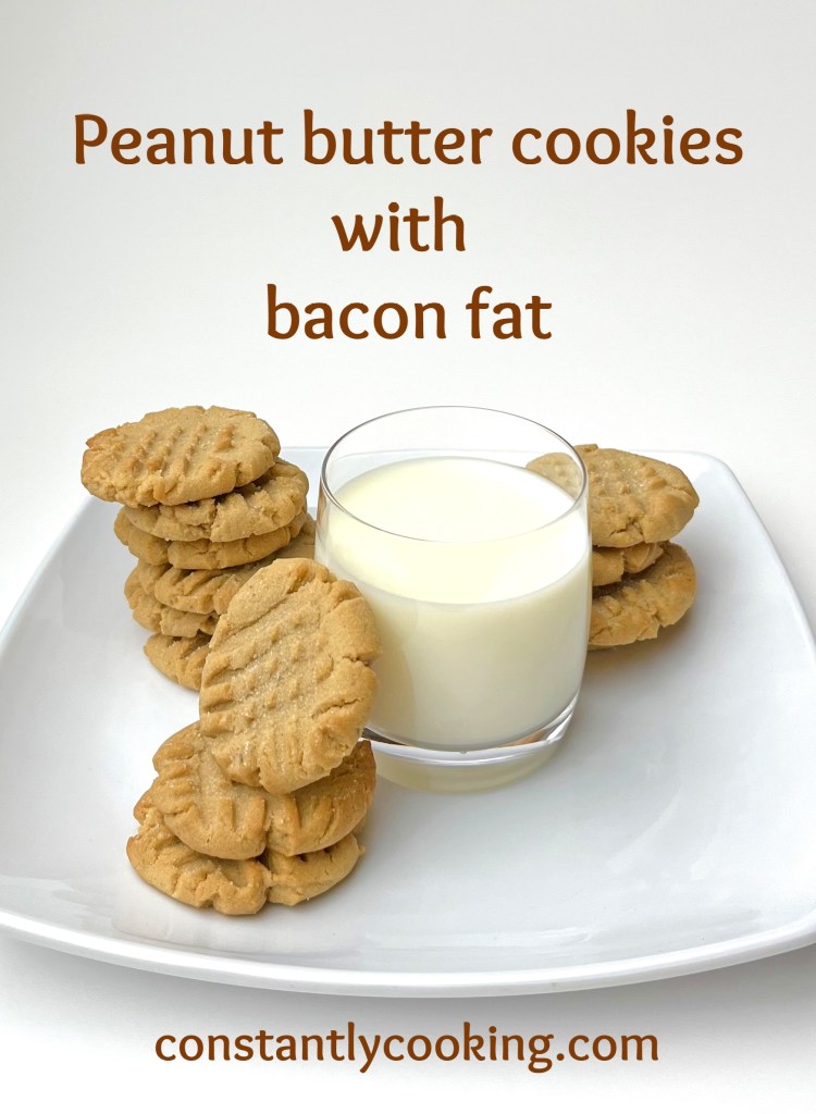 I’ve always been a fan of pioneer stories, particularly the ones that highlight the ingenuity and resilience of women who kept their families fed despite seemingly-insurmountable obstacles. My father grew up on a farm and I imagine my grandmother was similarly creative when it came to stretching her food budget and making good use of by-products. In that spirit, I present a most extraordinary cookie recipe, in which I have replaced the butter with bacon fat. I always have a jar of bacon fat tucked in the fridge to add a little je ne sais quoi when sautéing vegetables for soup or greasing pans for cornbread, to name just a few of my favourite uses. I happily emptied the jar to make these beauties and I won’t hesitate to do it again. If you really want to take these cookies to the next level, feel free to add about 1/2 cup of diced well-cooked bacon to the batter.