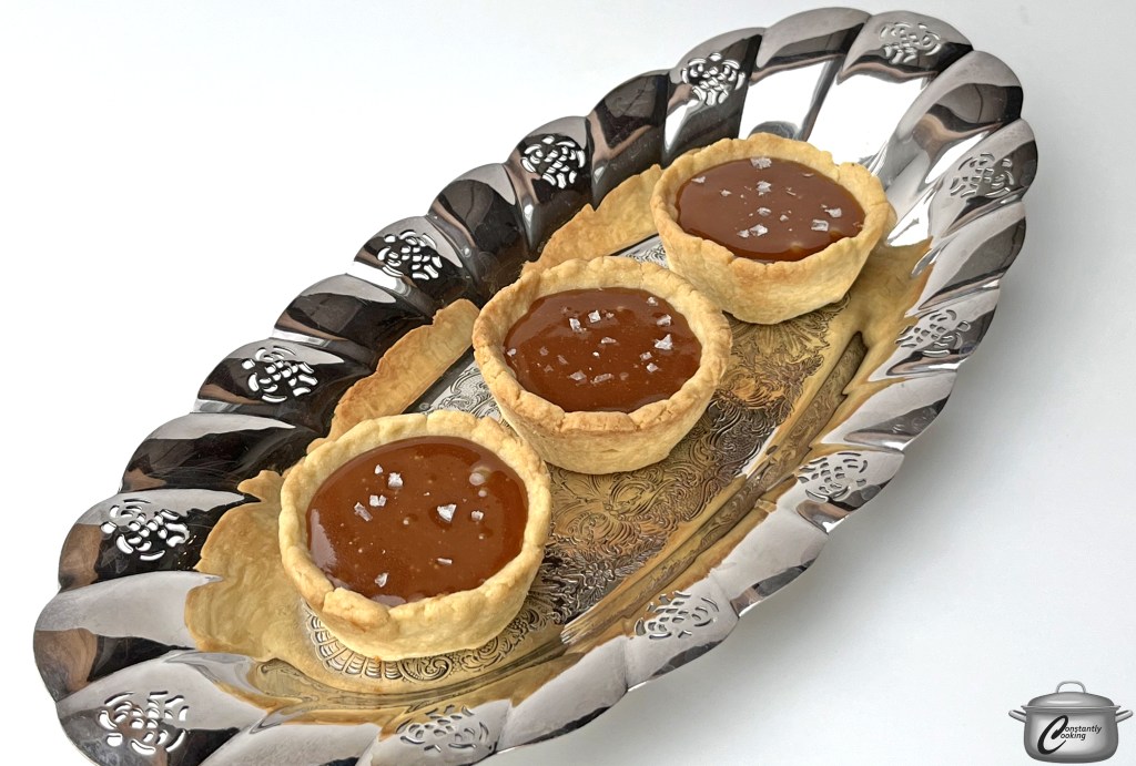 I’ve been fond of chocolate ganache tarts for many years but have developed a rather intense affection for salted caramel over the past decade or so. I thought creamy, fudge-like caramel filling might be perfect for not-too-sweet shortbread-style tarts, and I was right! While tart shells can be baked up to 4 days ahead and store in an airtight container, the finished tarts are best served the day of making. You can prepare the salted caramel in advance and refrigerate it, then warm to just above room temperature before filling the shells.