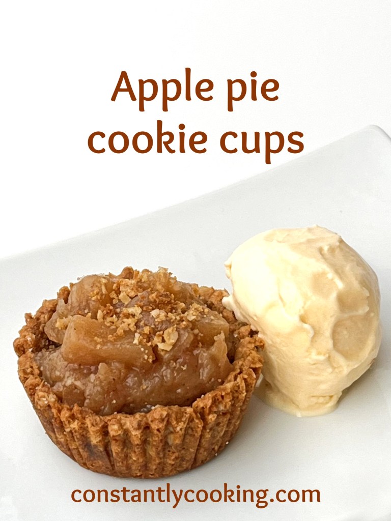 - To assemble, fill each cookie cup with apple pie filling. Sprinkle with about a teaspoon of reserved, baked oatmeal cookie crumble. Serve within 2 hours, with a scoop of ice cream if you like.