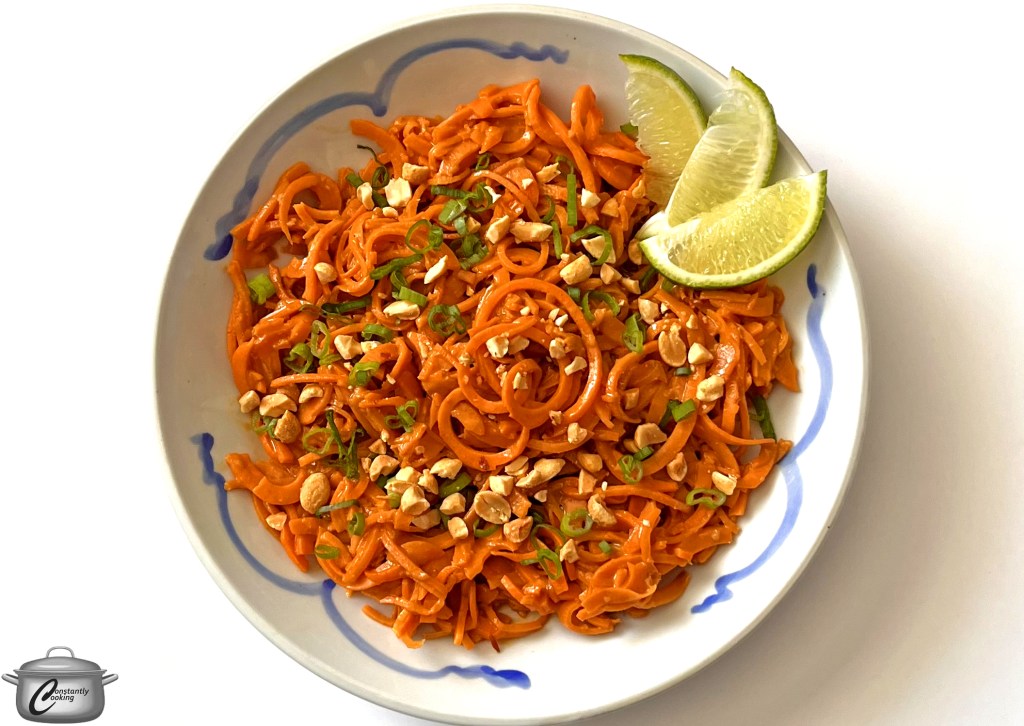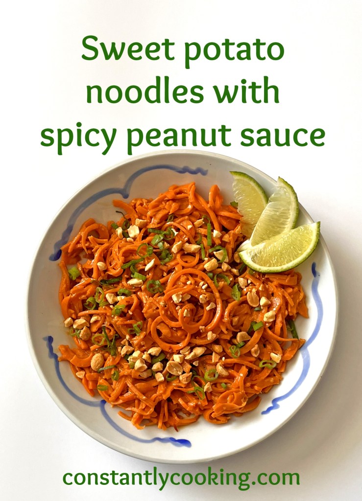 I confess I was a little late to jump on the spiralizing bandwagon when it first took off about 8 years ago but I am here to say that I am fully on board now. One of the most popular recipes on this site is my raw zucchini noodles with peanut sauce and I mused the other day that spiralized and sautéed sweet potatoes would likely benefit from the same treatment. After testing and tasting, I can confirm that they are just as good, if not better. And if you have peanut allergies to contend with, rest assured the cashew version is just as delicious. One more tip: make a double batch so you can enjoy the leftovers for lunch the next day.
