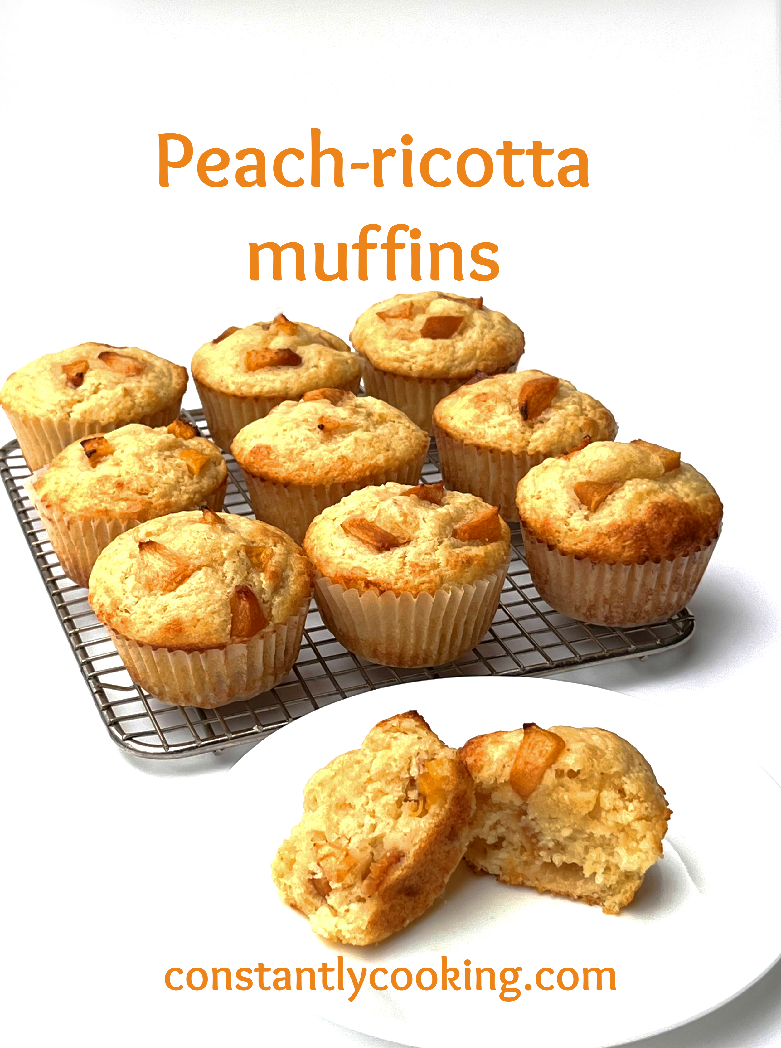 I’ve said it before and I’ll say it again: muffins should not taste like cupcakes. Don’t get me wrong – cupcakes are a fantastic dessert or party treat – but muffins are breakfast or snack food and as such, I feel like they should have some nutritional value. This relatively low-sugar recipe offers a nice pop of protein, thanks to the ricotta and milk, plus the peaches contain vitamins A and C. I love the texture of these muffins which are light but with a moist crumb and pleasingly chewy texture. As a bonus, they freeze extremely well. If you enjoy these muffins made with ricotta, you might also like this raspberry version.