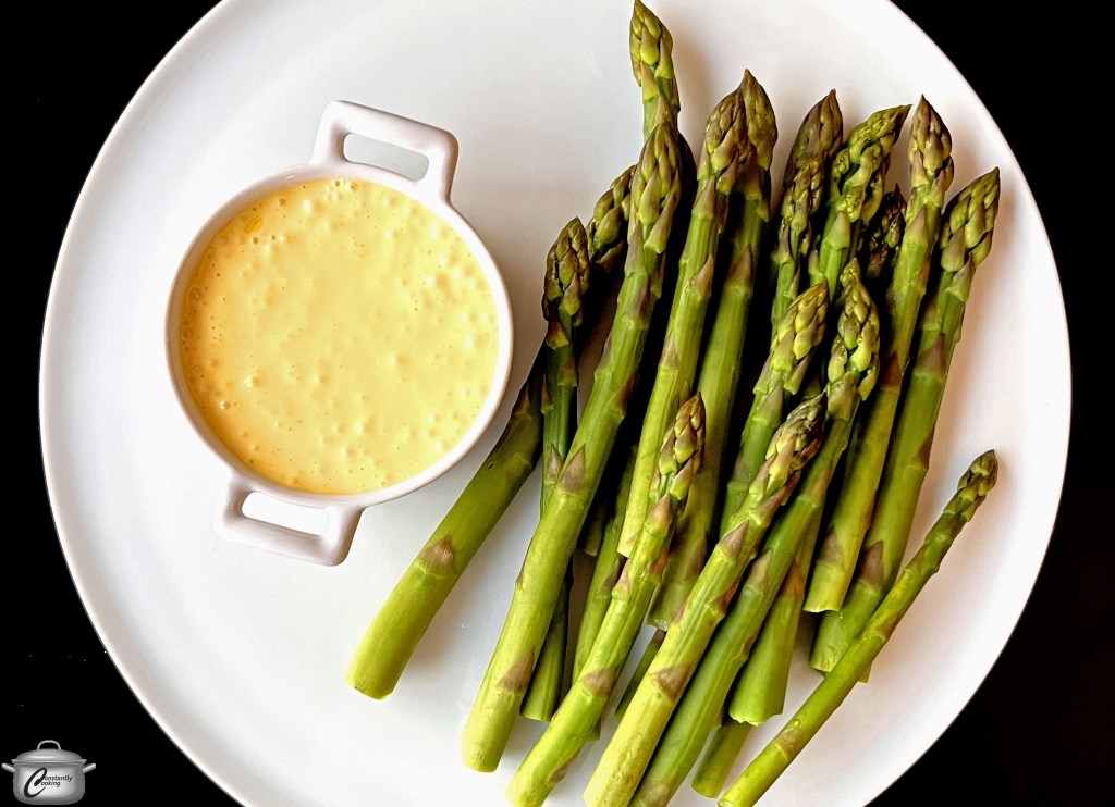 If you’re not a fan of asparagus, note that Hollandaise sauce is super delicious on many other vegetables as well – some of my favourites include roasted potatoes, cauliflower, broccoli, green beans, zucchini and sliced or roasted tomatoes. Hollandaise sauce can be enjoyed hot, warm or even at room temperature, though the warmer it is, the easier it will be to drizzle.