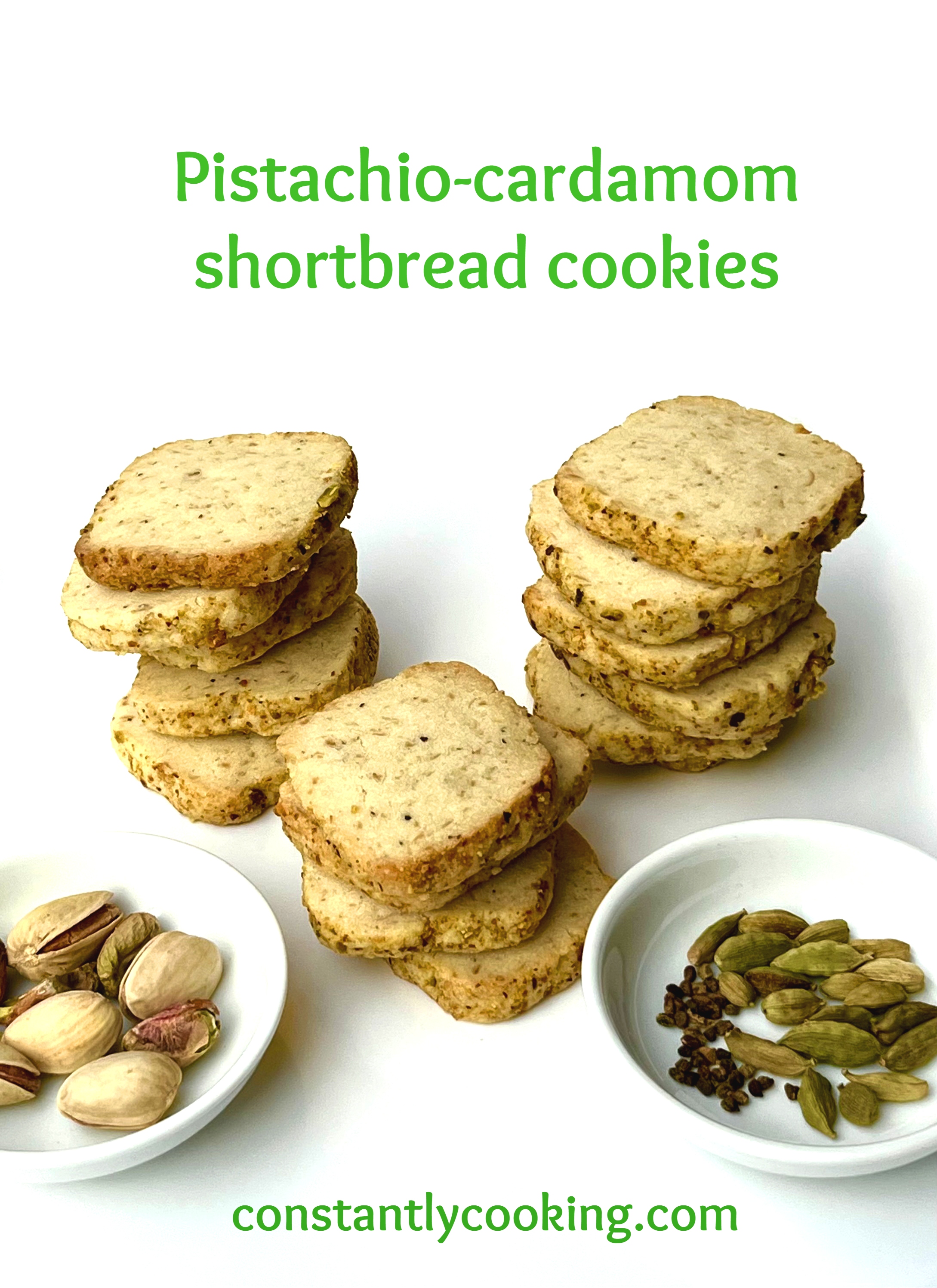 I love that most cookie dough can be stashed in the freezer then pulled out whenever one wants to enjoy fresh-baked treats in a hurry. This dough is perfect for an impromptu tea party, plus the cookies taste extra-festive thanks to the subtle cardamom flavour and chopped pistachios. Freshly-ground cardamom seeds (from green cardamom pods) are ideal in this recipe, rather than pre-ground cardamom. When preparing this dough, I often divide it in half and bake up just a dozen, freezing the second half of the dough for later.