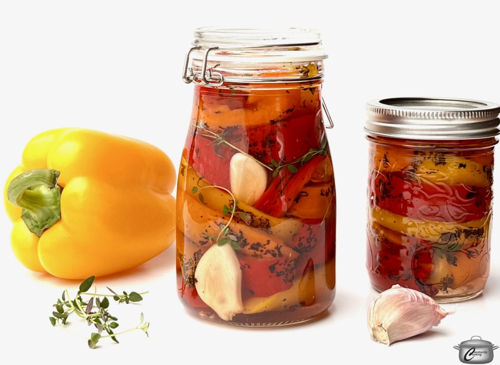 • In a small pot or microwave safe vessel, heat the vinegars, water, salt and sugar, stirring until sugar and salt have dissolved. Pour over roasted peppers, filling the jar to within 1/4 inch (6 mm) of the top. If you are short a tablespoon or two of brine, just add water.