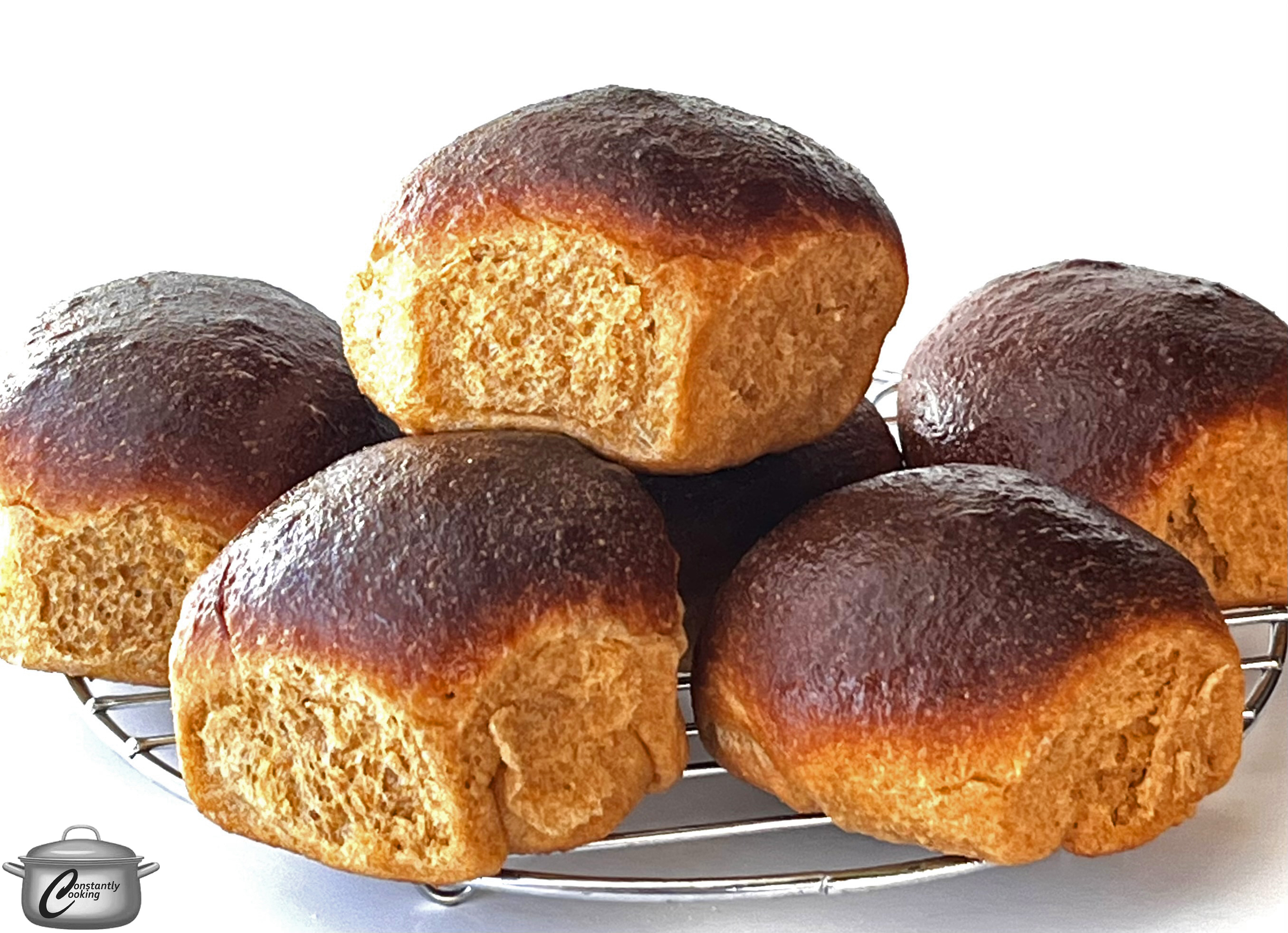 Having had the good fortune to grow up feasting on traditional dishes from Canada’s Maritimes, I’ve always had a fondness for what is often referred to there as ‘brown bread’. I love it in either loaf or dinner roll form, thanks to the delicious dough made with a little molasses for colour and a hint of sweetness. For this recipe, I’m using the term ‘molasses dinner rolls’ so it doesn’t get confused with the version of brown bread/rolls sometimes offered in the United States, which we Canadians would simply call whole wheat bread. As the instructions below explain, you can shape the rolls and freeze them to bake later, which is a big plus if you don’t want to bake up the whole batch at once. If you like these old-fashioned and super delicious rolls, you might also like my traditional mashed potato rolls.