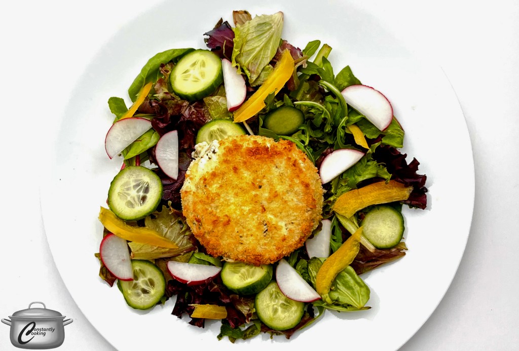 Salad with air-fried Boursin cheese
