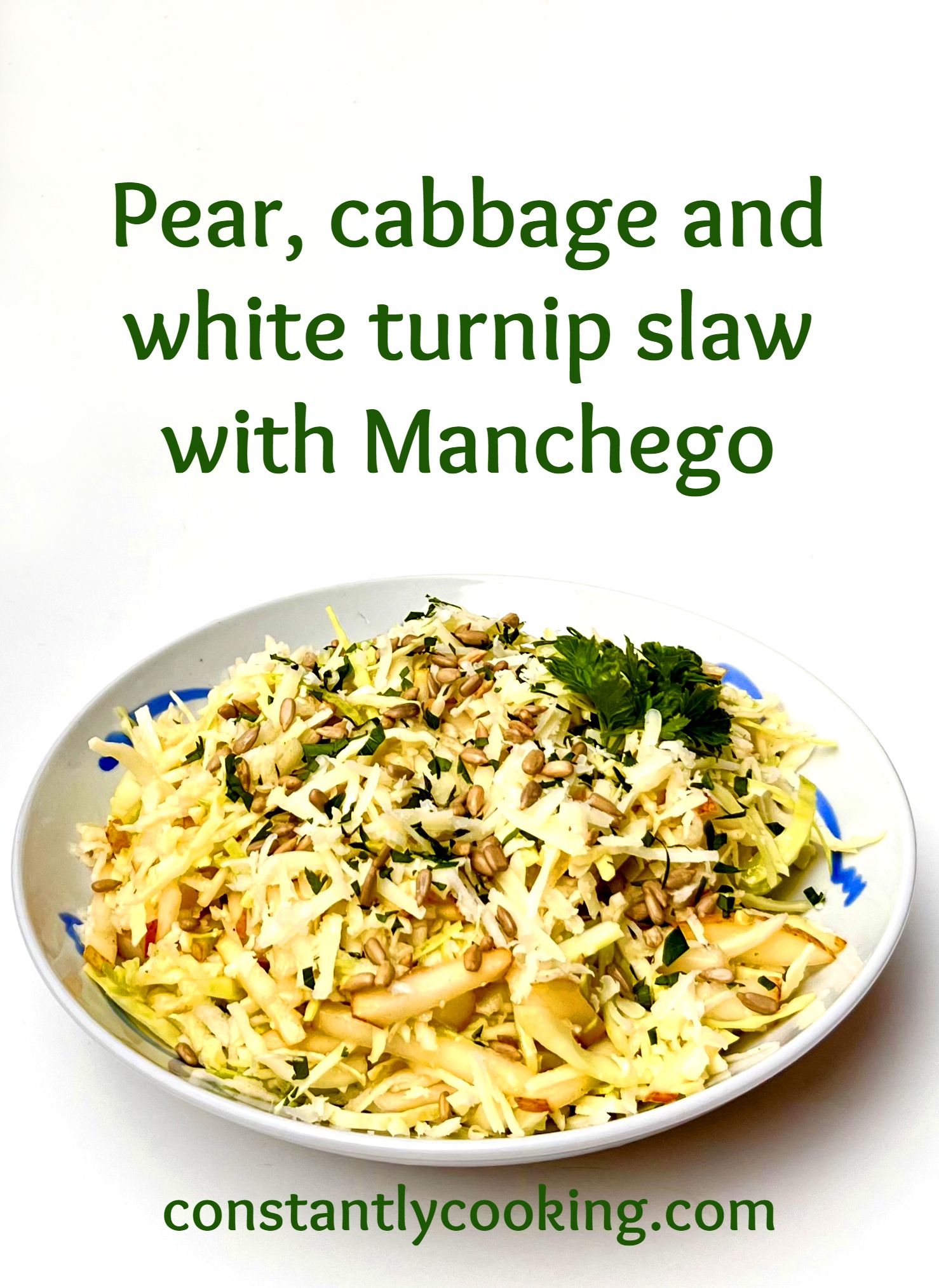 - Combine cabbage, pear, turnip and 2/3 of the Manchego in a large bowl. Drizzle dressing over top and toss to combine; season with salt and pepper.