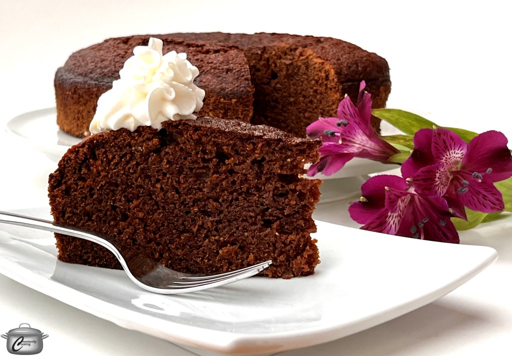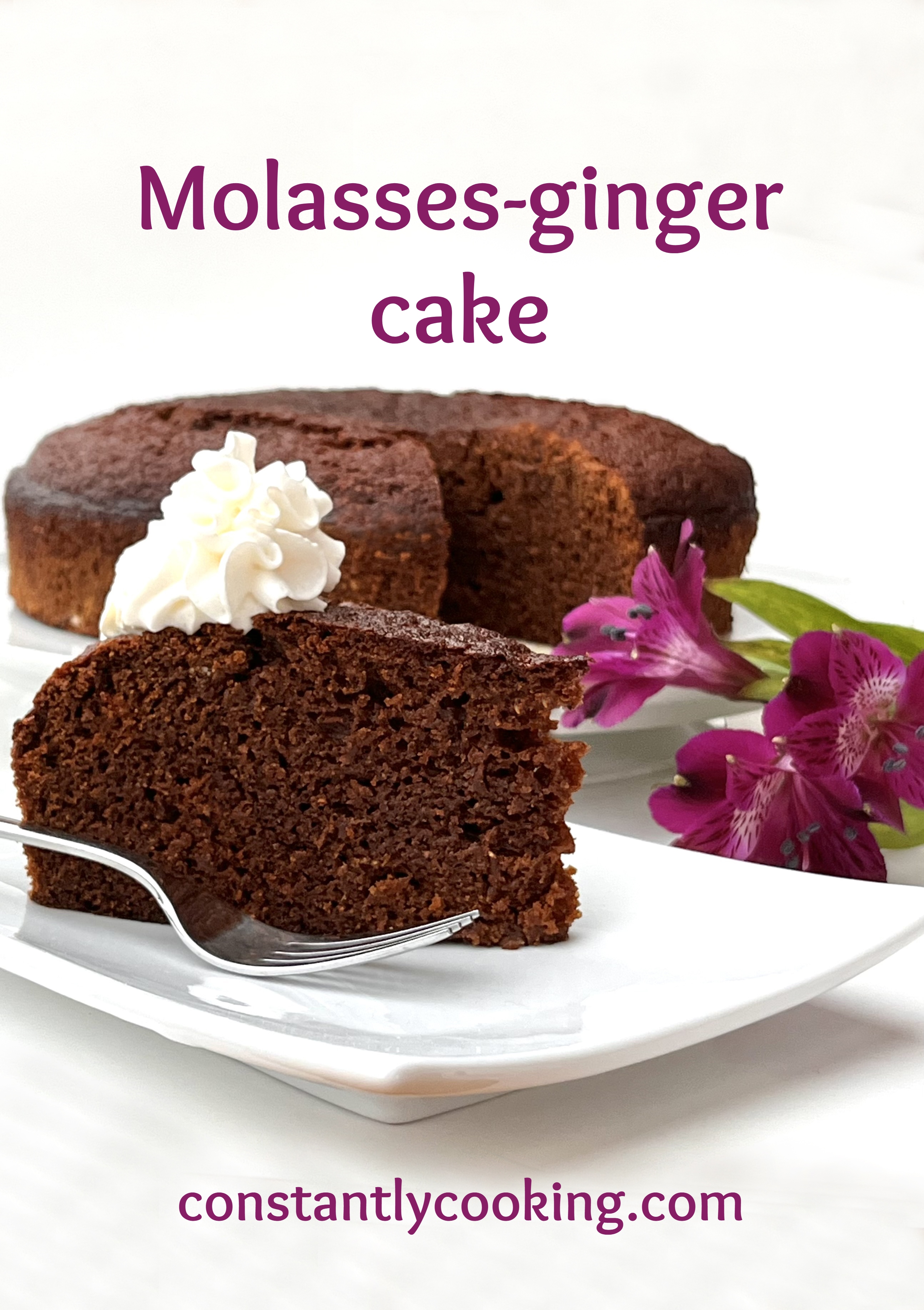 When I was growing up, a regular dessert – one we enjoyed almost every week – was traditional gingerbread; the recipe was my grandmother’s. Not the cookies, but a rich, dense cake that was often served warm, with whipped cream or ice cream (if we were lucky). Molasses features prominently in cuisine from Nova Scotia (where my family is from) and other Atlantic provinces of Canada thanks to historic trade with the Caribbean, so I developed a real taste for the combination of molasses and ginger at a very young age. This cake – with a generous helping of freshly grated gingerroot in it – is versatile and delicious, making it ideal for brunch, teatime or as a dessert. I definitely recommend using a round spring form pan if you have one; for whatever reason, slices of cake (rather than squares) always look prettier. If you like this flavour combination, you’ll likely also enjoy my old-fashioned molasses ginger cookies.