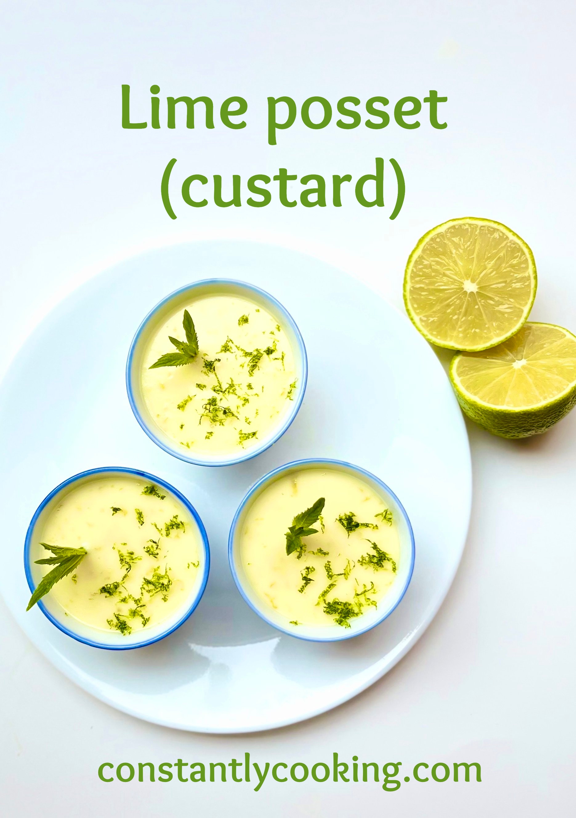 I’m always dreaming up new ways to add a small, sweet finishing touch to a menu. As a lifelong fan of lighter desserts (things I like to call “fluffy, not stuffy”), mini portions of custard-type treats really work for me. While I originally created this recipe to serve at the end of a flavourful Asian-inspired meal, it would be great with any cuisine and might be especially nice on a brunch menu. Depending upon the size and juiciness of the limes you purchase, you’ll likely need 2 or 3 for this recipe. Note that you can easily – and very quickly – make this up to 48 hours in advance and refrigerate until serving time.