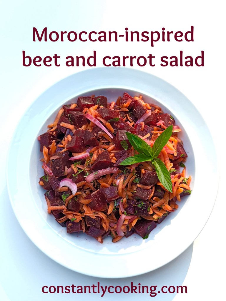 - Add the grated carrot, onion, mint, and cilantro to the bowl. Drizzle with the dressing and toss gently until the beets are evenly coated.