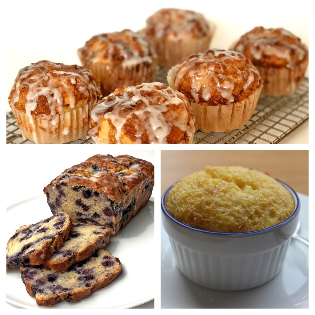 Baked goods are not just for dessert – they’re delicious any time of day! So, why not whip up a sweet treat to get your day started on bright note? From waffles to pancakes to French toast and more, sweet goodies have long been popular at breakfast. In this episode, I show you how to make three scrumptious options that will fuel you well for the day ahead. Click on the titles to jump to the recipes.