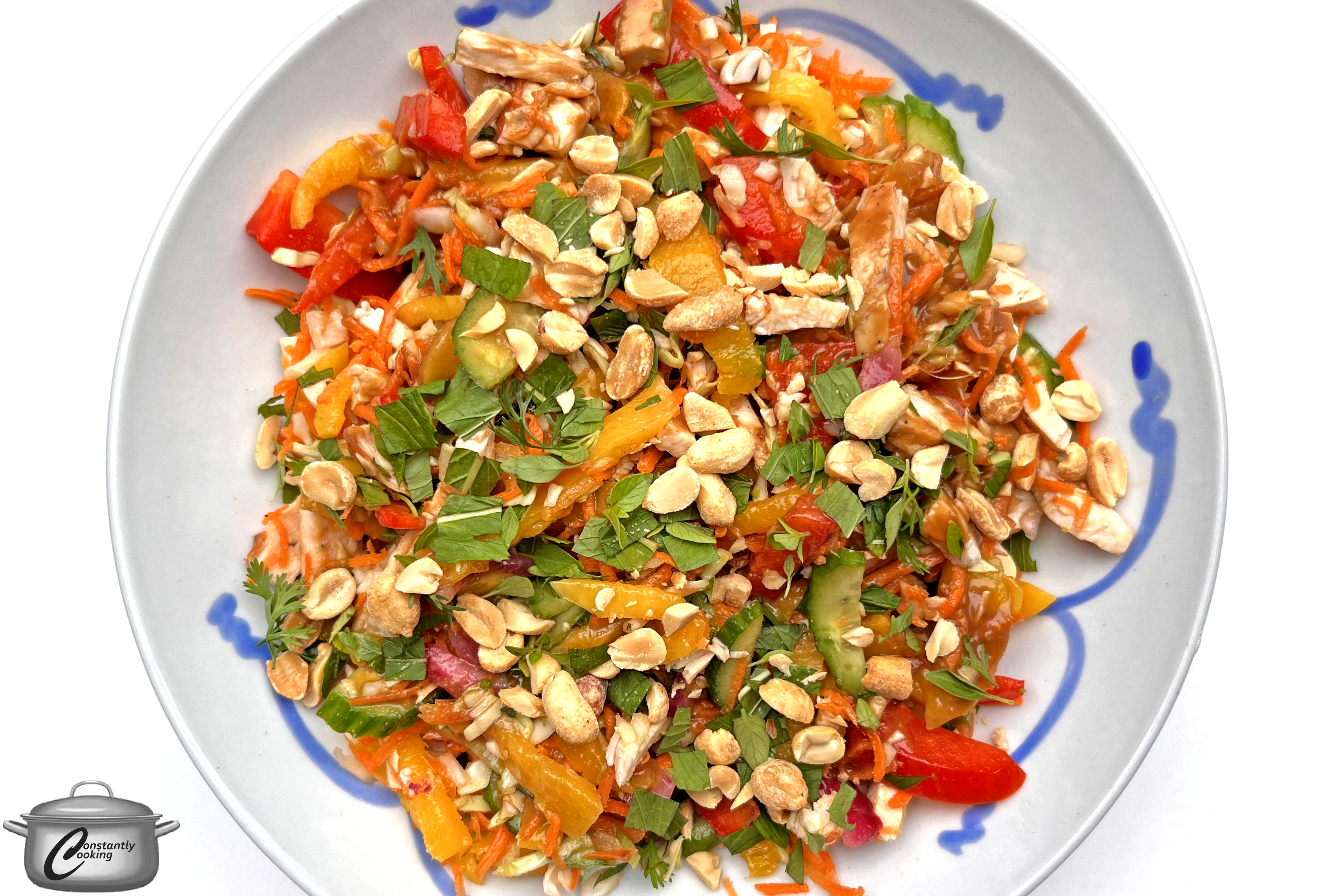 Thai-inspired chicken and mango salad with peanut vinaigrette