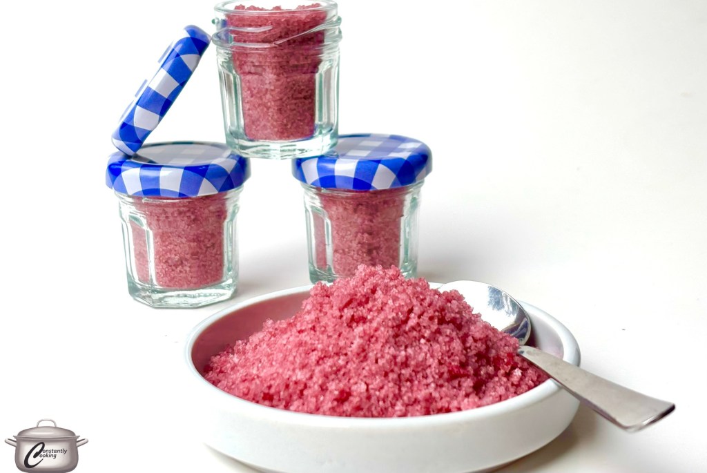 I am a big fan of flavoured finishing salts as even just a small sprinkle added before serving can lend a terrific pop of flavour to a dish. This particular infused salt is delicious on beef, chicken, pork and fish and the mixture can be stored in an airtight container for up to a year. If you’re interested in making a collection of flavoured salts for gifts, you might like this set of three recipes, including lemon salt, lime-cilantro salt and hot chili pepper salt.