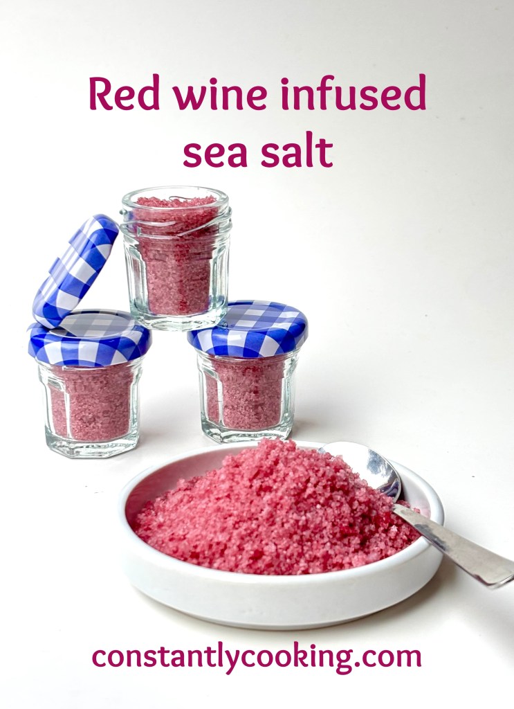 - Put the sea salt in a glass jar and pour the red wine over it. Stir well to blend then cover the jar and let sit for at least 8 hours or up to 24, stirring several times while it rests.