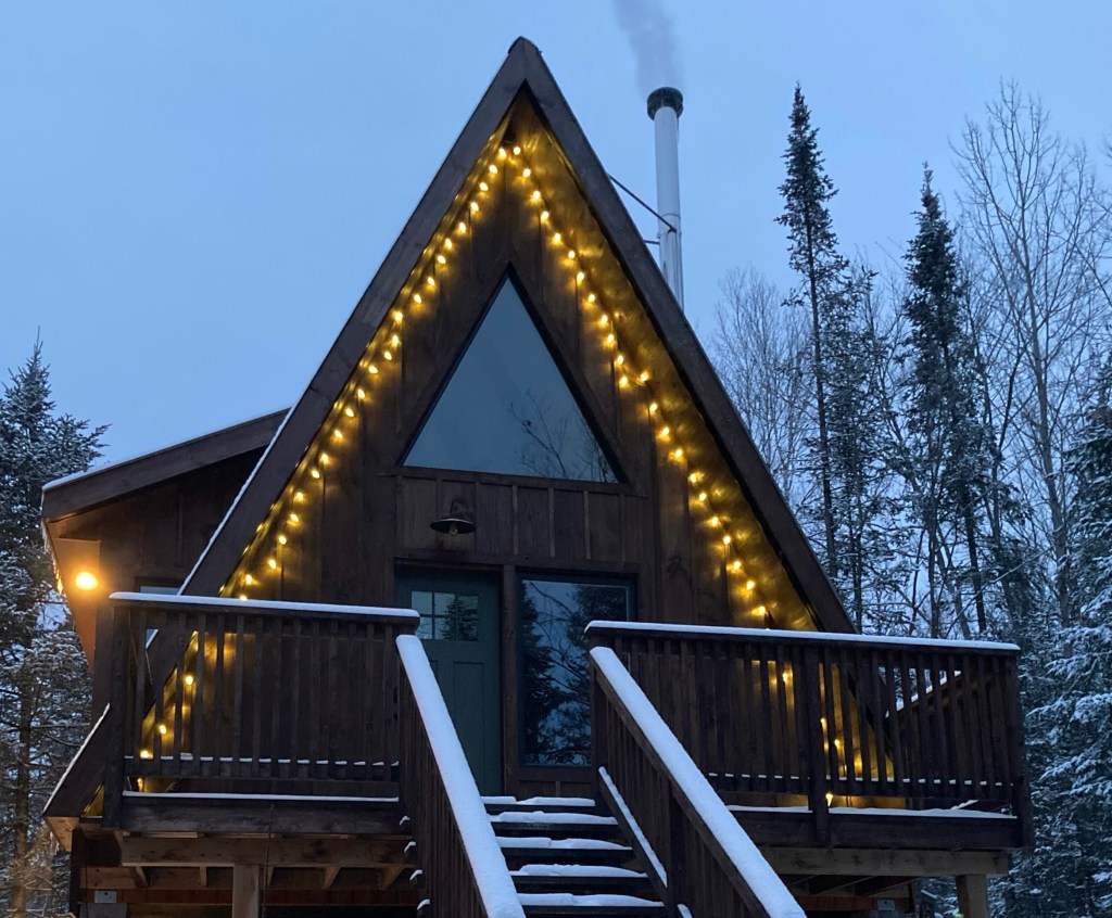 We love the modern, minimalist A-frame cabin for its layout and location, just a short walk through the woods from the parking and reception area. From the warming woodstove to the compact but highly functional kitchen to the comfy bed and deluxe ensuite, it offers both luxury and simplicity, not to mention gorgeous views of the forest from its many windows. The similarly-equipped C2 cabin, with its cozy sleeping loft, is situated nearby and C3, the off-grid cabin (available from spring through autumn), is located lakeside, accesible via the 1.5 km walking trail.