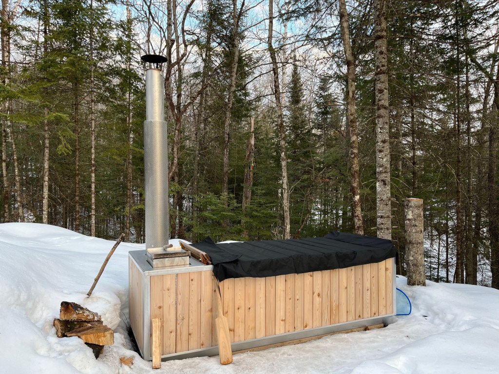 Everything at Terre et Neige is built to support leisure. From the wood-fired outdoor tub where you can soak in peace under the sun or stars to the fire pit to the picnic table, you can relax outdoors just as easily as inside. Snowshoes are provided for winter stays.