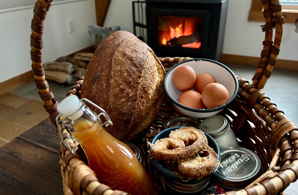 Speaking of feasting, the food at Terre et Neige is second to none. As the host of a TV cooking show, I feel confident saying that we eat *really* well at home, and yet my husband consistently describes co-owner/chef Julia as running “his favourite restaurant in the world”. All offerings from her kitchen are seasonally inspired and prepared almost exclusively with hyper-local ingredients. Delectable breakfast baskets are delivered to your door in the morning, brimming with piping hot coffee, fresh baked goods and more. Multi-course gourmet dinner baskets are available as option, packaged up for you to collect and reheat at your leisure.