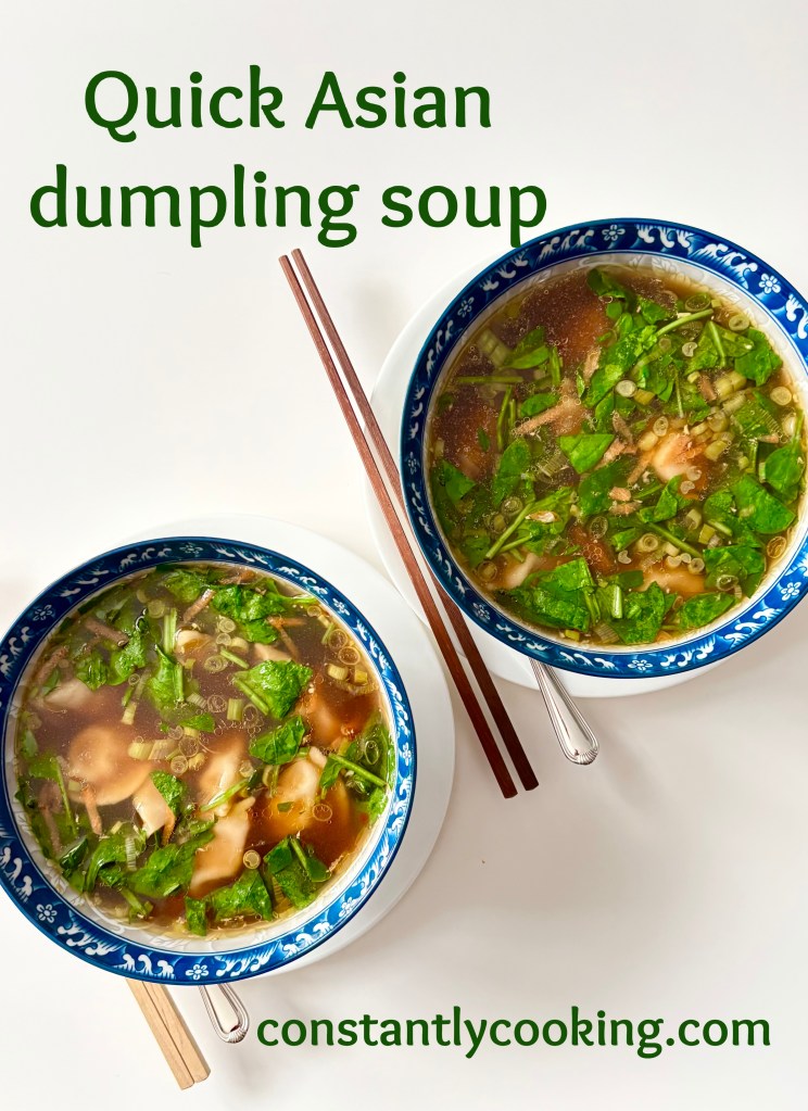 I am always surprised when my husband tastes a recipe of mine for the first time and offers no notes. He loves to make suggestions about ‘enhancements’ he feels would be appropriate (I rarely follow them, just in case you’re wondering. He has the kind of palate that believes everything is better with raisins…). And yet, much to my delight, he’s still raving about this new soup and has pronounced it ‘just perfect’ as-is. I like to use smaller-sized Asian dumplings so they are easier to eat, but any kind will do. Feel free to play around with the vegetable add-ins to make this a ‘clean out the fridge’ meal – and one that’s ready in just ten minutes! If you enjoy this recipe, you might also like my ten minute Thai soup.