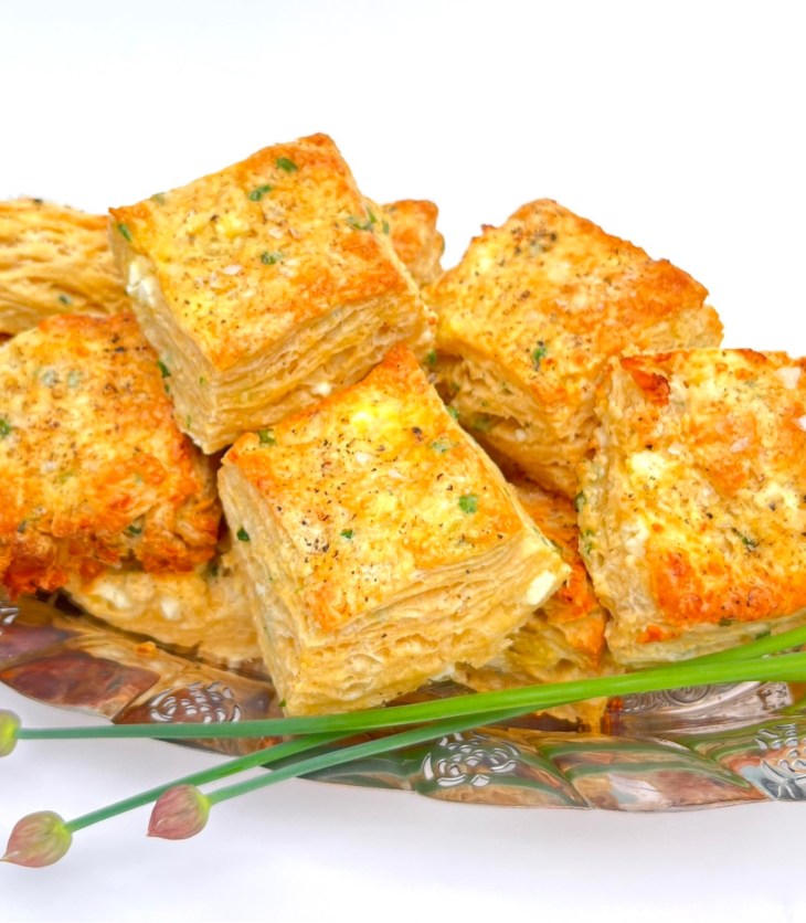 This recipe offers a savory take on biscuits, featuring a delightful combination of chives and feta. The preparation involves mixing dry ingredients, incorporating cold butter, and blending in buttermilk, egg, chives, and feta to create a dough. After cutting and baking, the result is 16 delicious biscuits perfect for soup or freezing for later.