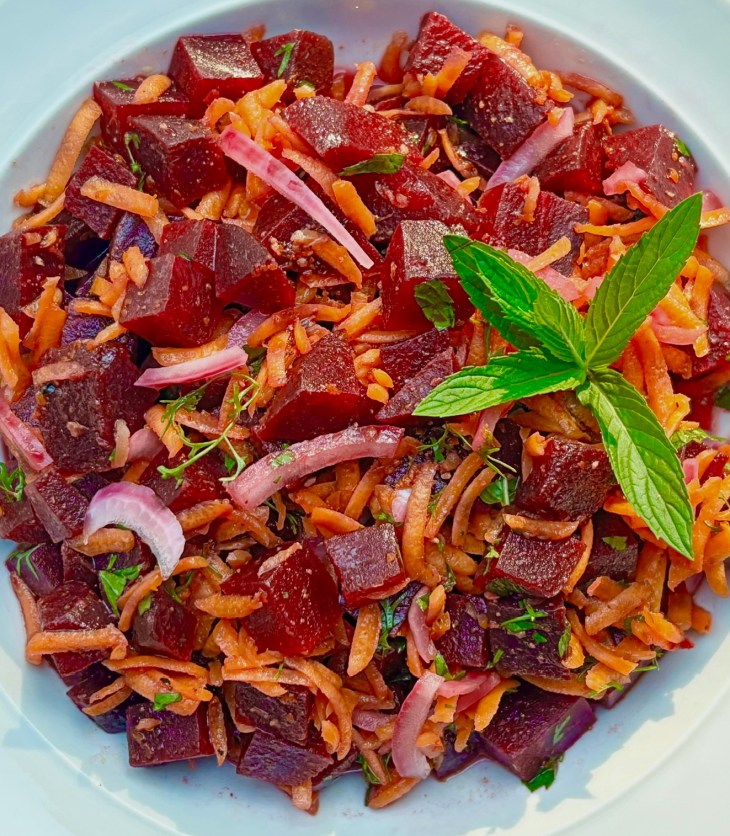 This content presents a flavorful and nutritious salad featuring cooked red beets complemented by a citrus vinaigrette and fresh herbs. It emphasizes versatility, demonstrating that salads need not contain lettuce. Easy to prepare and ideal for winter, the recipe offers serving options as a side dish or meatless main course.