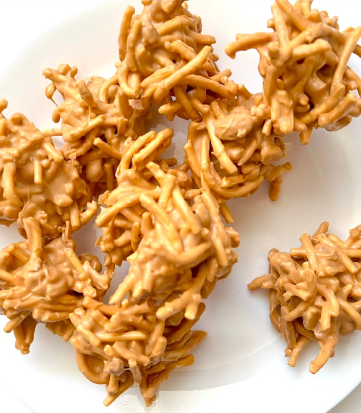 In January, a pantry clean-out inspired a no-bake treat made with butterscotch chips, crispy chow mein noodles, and chopped nuts. The treat, reminiscent of childhood snacks, received high praise. The recipe involves melting the chips, mixing in the noodles and nuts, and setting them on a baking sheet to cool.